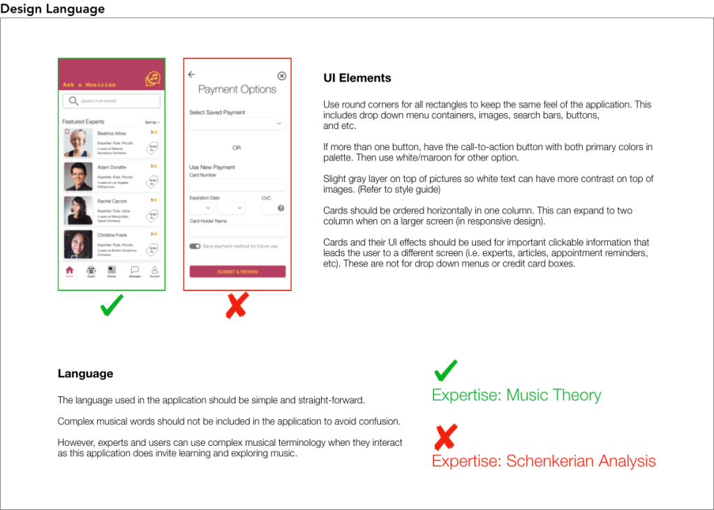 Note: selected parts of the Style Guide and Design Language instructions are featured below: