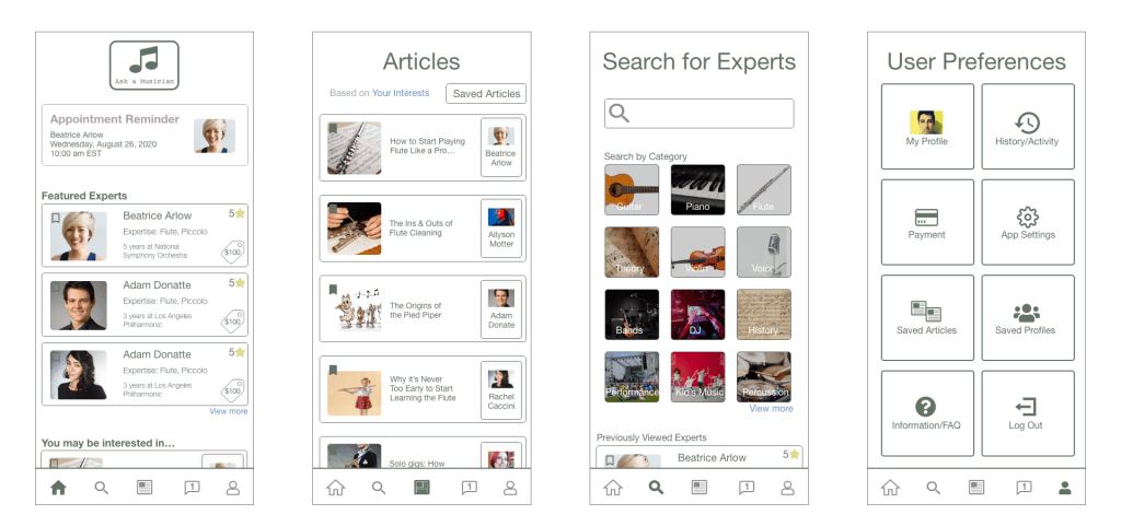 I was tasked with creating an expert focused application for CareerFoundry’s UX Immersion portion of the design course. With my background in music, I thought to create a product for musicians of various levels to contact expert musicians about any music-related topic, from taking lessons for specific instruments to learning more about music theory or history.