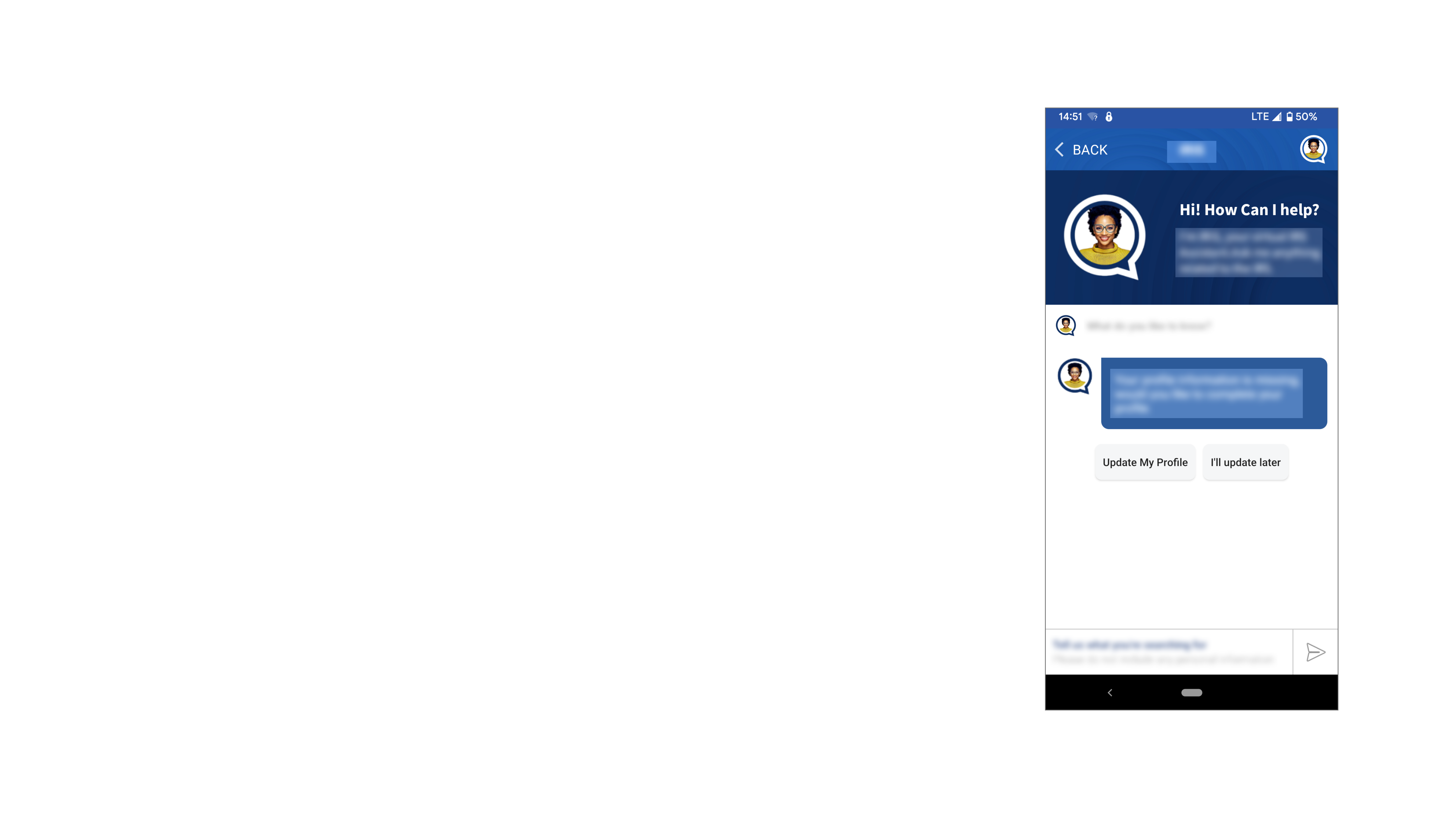 For usability testing, we used a combination of our internal observations and third party results to determine the immediate and future improvements needed for the app. These sessions helped us gain a better understanding of questions users would ask and how they would ask the chatbot.